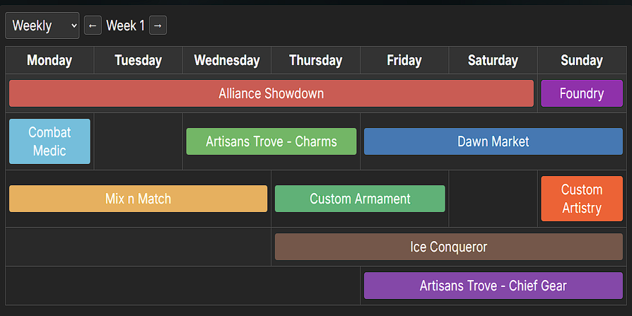 Below is a Calendar that shows the rotation of events so you can plan accordingly!